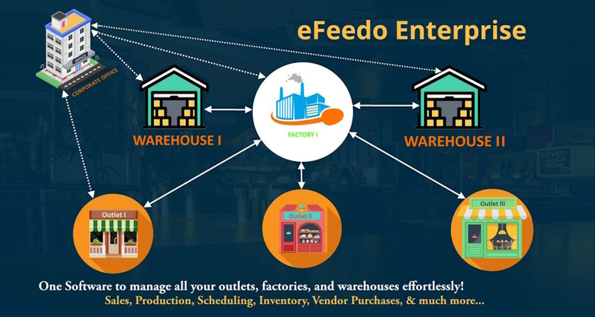 Designed to handle operations across multiple sites (factories, outlets, warehouses) with real-time synchronization. .
